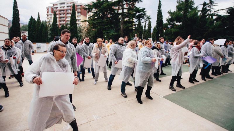 Teams illustrate a message with their bodies